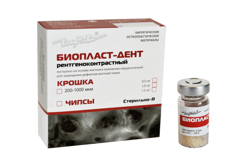Материалы «Биопласт-Дент» предназначены для восстановления структурной целостности костных дефектов и повышения остеогенного потенциала костной ткани в хирургической стоматологии и челюстно-лицевой хирургии: